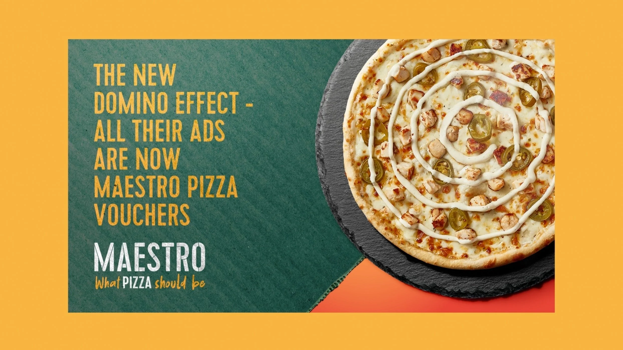 We ran a city-wide promo telling everyone in Dubai that any pizza ad or offer they spotted, no matter which brand they belonged to, could be used as vouchers to get even better offers at the new Maestro Pizza. Effectively turning every pizza ad in Dubai into a Maestro Pizza ad.